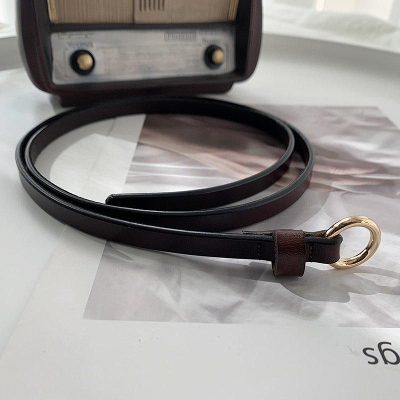 高品質なレザーベルトで、金属リングがアクセントとなり洗練された印象を演出します。