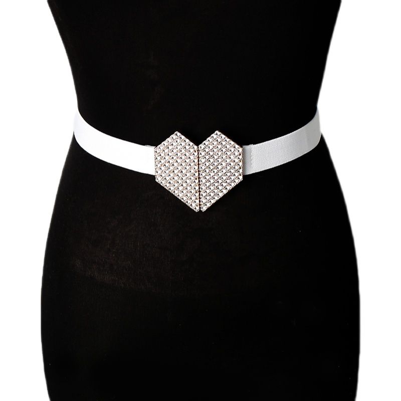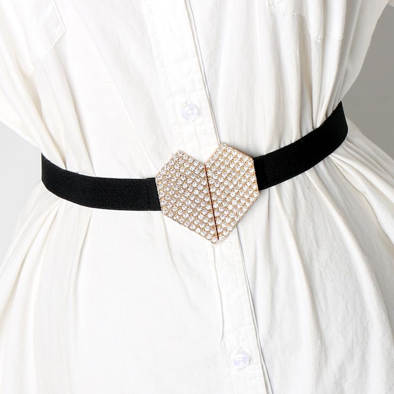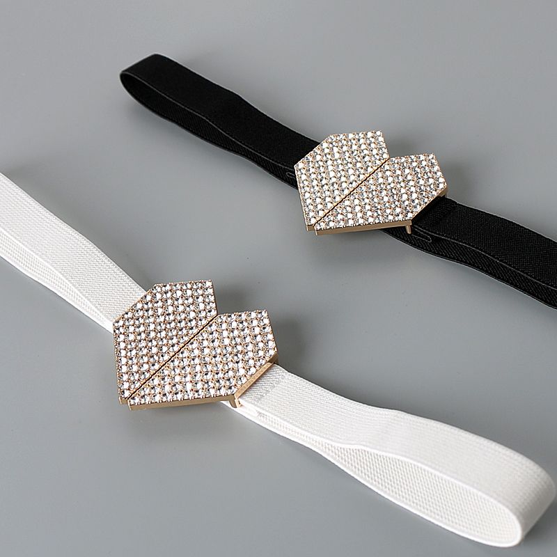 キラキラビジューが輝くハート型バックルが特徴的なゴムベルト。