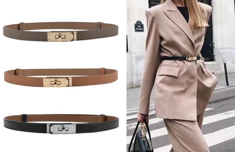 エレガントなターンロック式の金具がアクセントになった、洗練されたデザインのレザーベルトです。