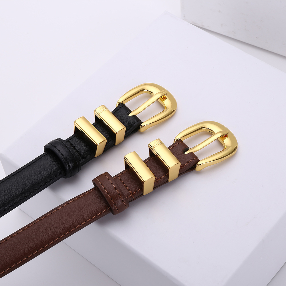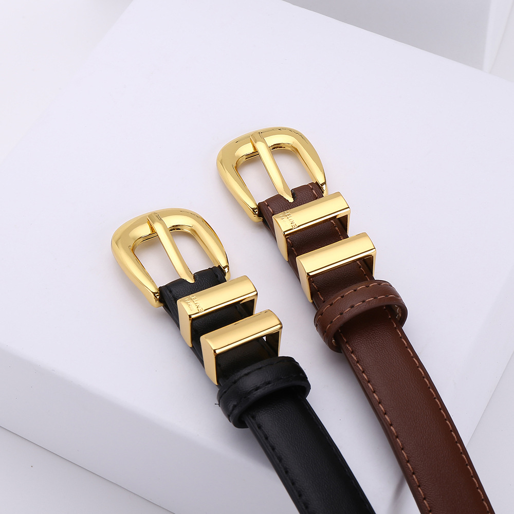 光沢感のあるゴールドバックルが華やかさをプラスし、カジュアルからきれいめスタイルまで幅広く対応します。