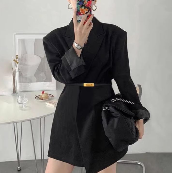 洗練されたゴールドの金具がアクセントとなり、ジャケットやワンピースのウエストマークに最適なレザーベルトです。