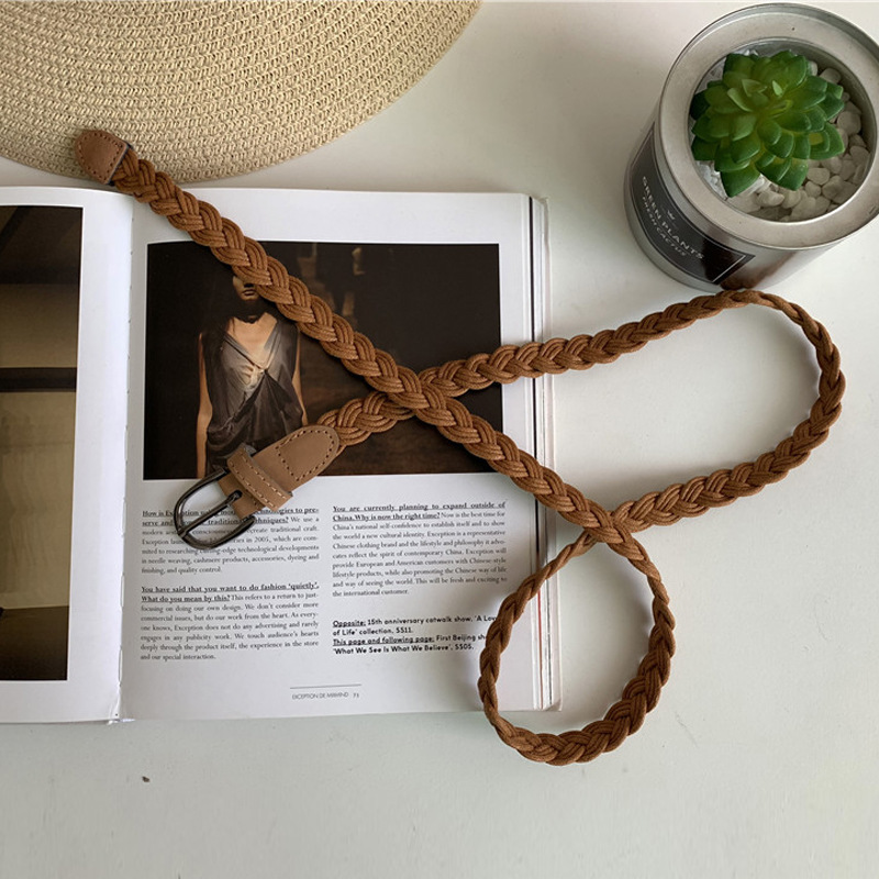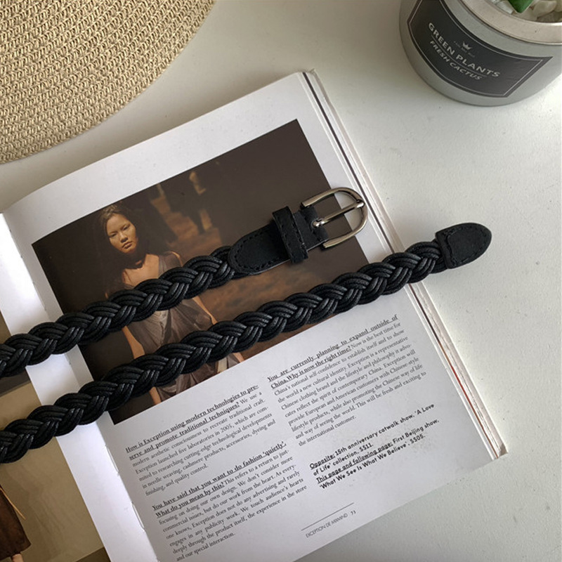 繊細な編み込みデザインが魅力的なレディース ベルトです。