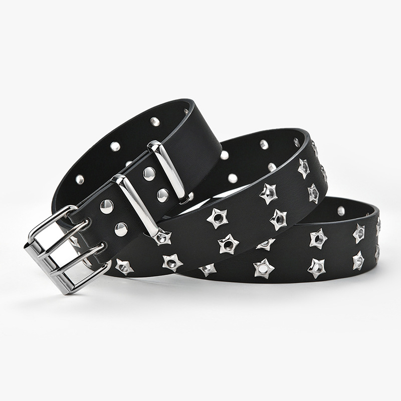 星型のスタッズがベルト全体に配置されたデザイン性の高いレディース ベルトです。